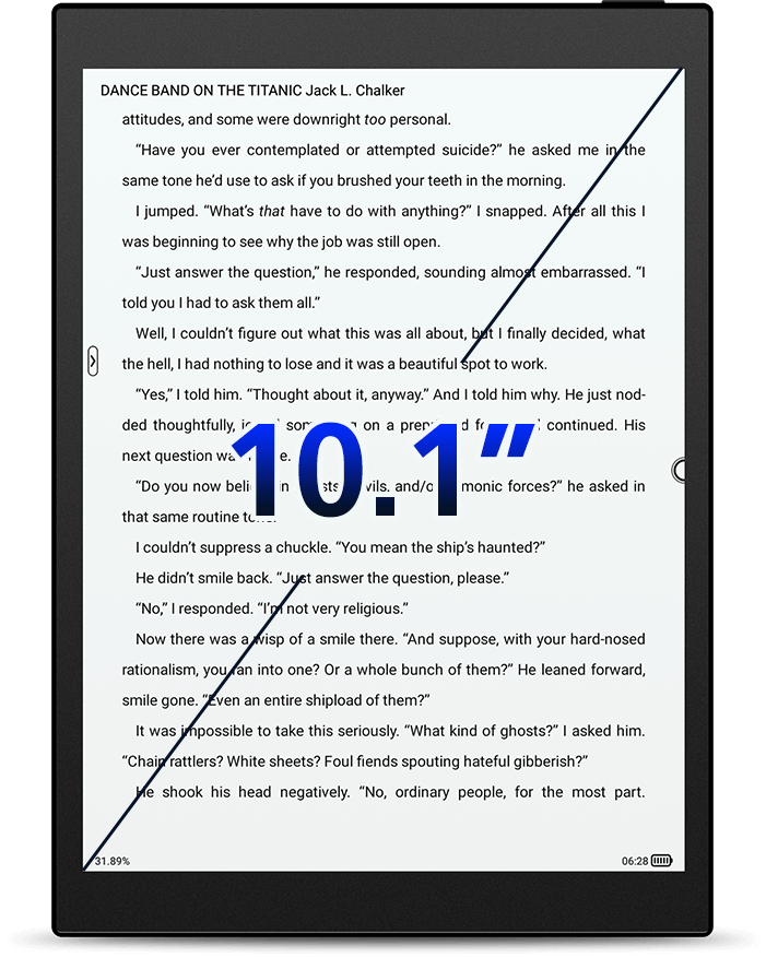 Genießen Sie Klarheit selbst bei direktem Sonnenlicht mit unserem 10-Zoll-E-Ink-Augenschutz-Bildschirm, ein visuelles Vergnügen für Ihr Lesevergnügen.