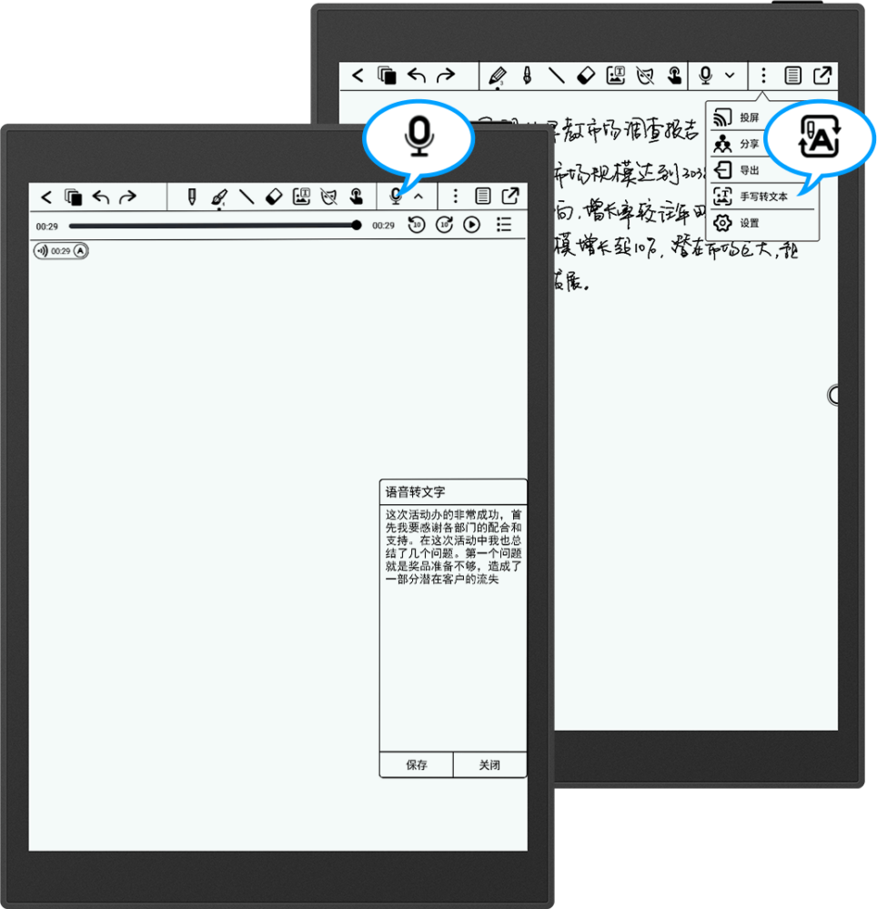 Entfesseln Sie Ihre Kreativität mit Funktionen wie synchroner Aufzeichnung während des Notizennehmens, Transkription von Aufnahmen und handschriftlichem Text in Text, Echtzeit-Cloud-Synchronisierung sowie Export oder Teilen mit nur einem Klick.