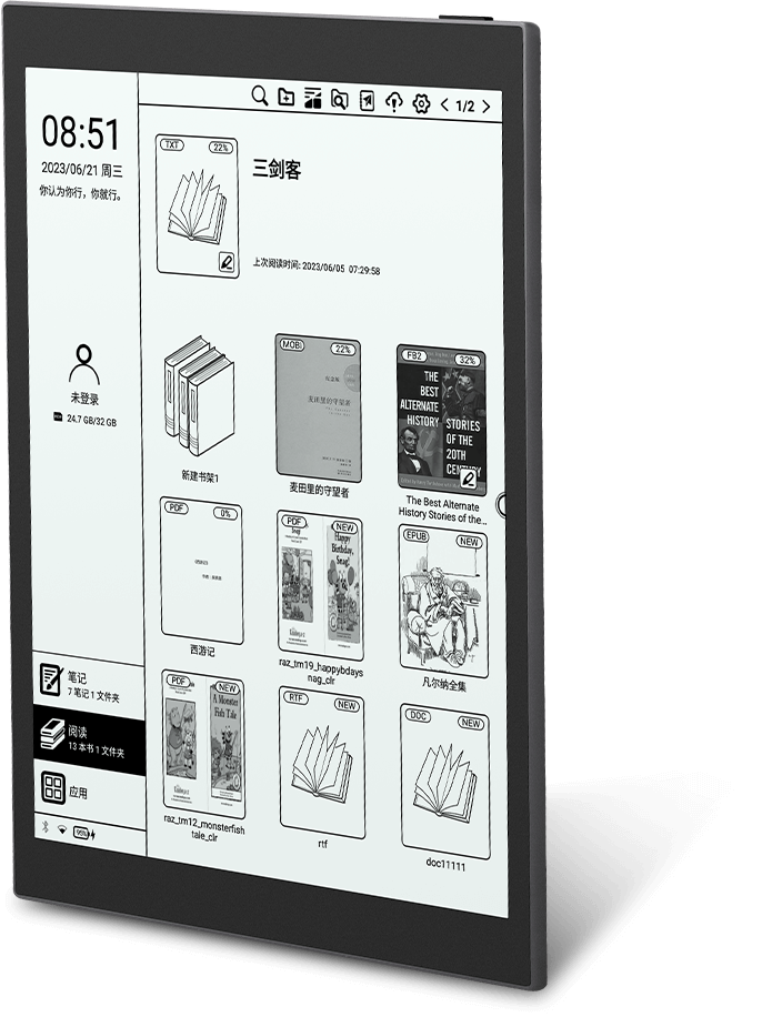 Mehr als 10.000 E-Books können gespeichert werden*. Ihre elektronische Bibliothek für unterwegs, alles, was Sie lesen möchten, kann im elektronischen Papierbuch gespeichert werden. Selbst auf langen Reisen können Sie ganz einfach Ihre Lieblingsbücher auswählen.