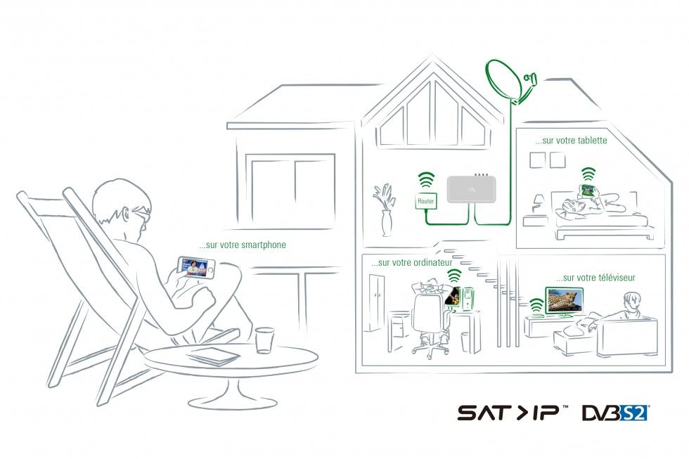 La télévision par satellite manque de souplesse quand elle passe par une prise raccordée au mur : enregistrer une deuxième chaîne, regarder un autre programme dans la pièce d’à côté ou s’offrir la retransmission du match de foot dans le jardin peuvent vite s’avérer de véritables défis.