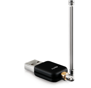 Beautifully designed, eyetv go comes with a variety of options for aerial reception. The miniature telescopic aerial attaches neatly to the end of the TV stick without wires or cables, and a larger portable rod antenna is also included as an alternative.